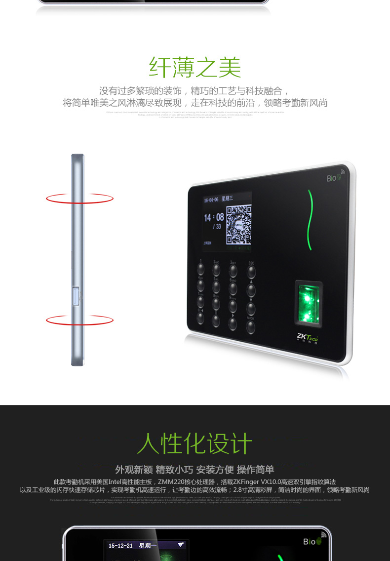 中控智慧W6指纹考勤机手机APP打卡wifi签到智能云服务异地报表